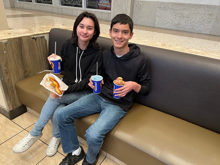 Second: after school, I promised my son we’d stop by the mall — but not just any mall. The one where we’ve spent countless afternoons over the years, grabbing lunch in the food court, a pretzel from Auntie Anne’s, or wandering through the holiday displays.